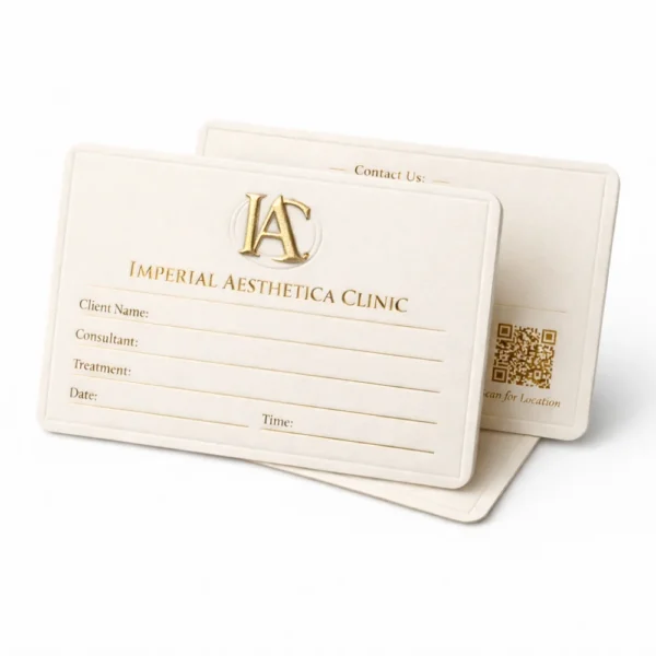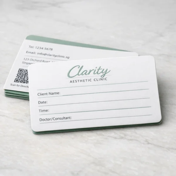 Suitable for clinics, salons, service centres and consultation-based businesses, appointment cards can be customised in different sizes and writable paper stocks to match operational workflow and branding requirements.