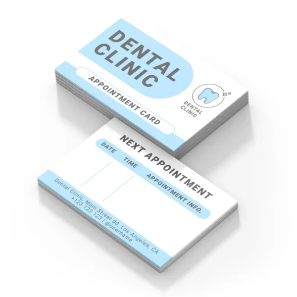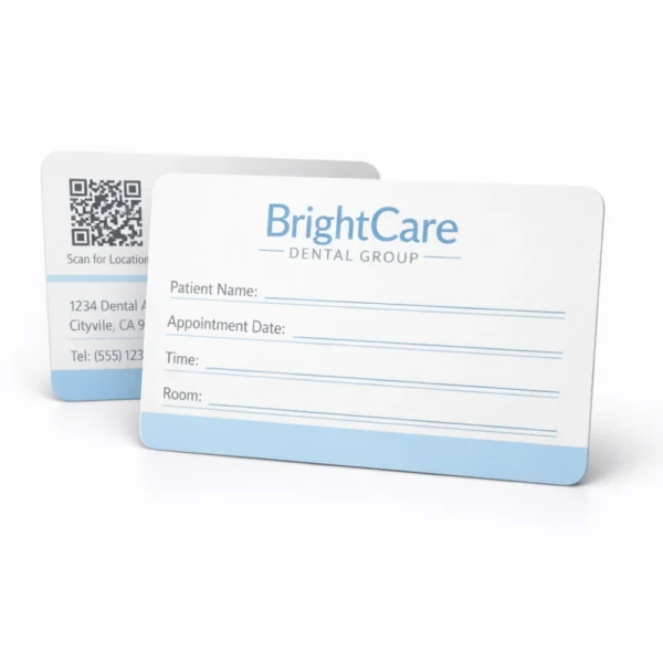 Appointment cards are commonly used by medical clinics, dental practices, beauty salons, repair centres and professional service providers. Their compact size allows easy storage in wallets or organisers.