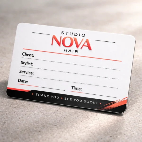 Appointment cards are designed to record booking details in a clear and convenient format. They help businesses reduce missed appointments while ensuring customers have a physical reminder of their next visit.