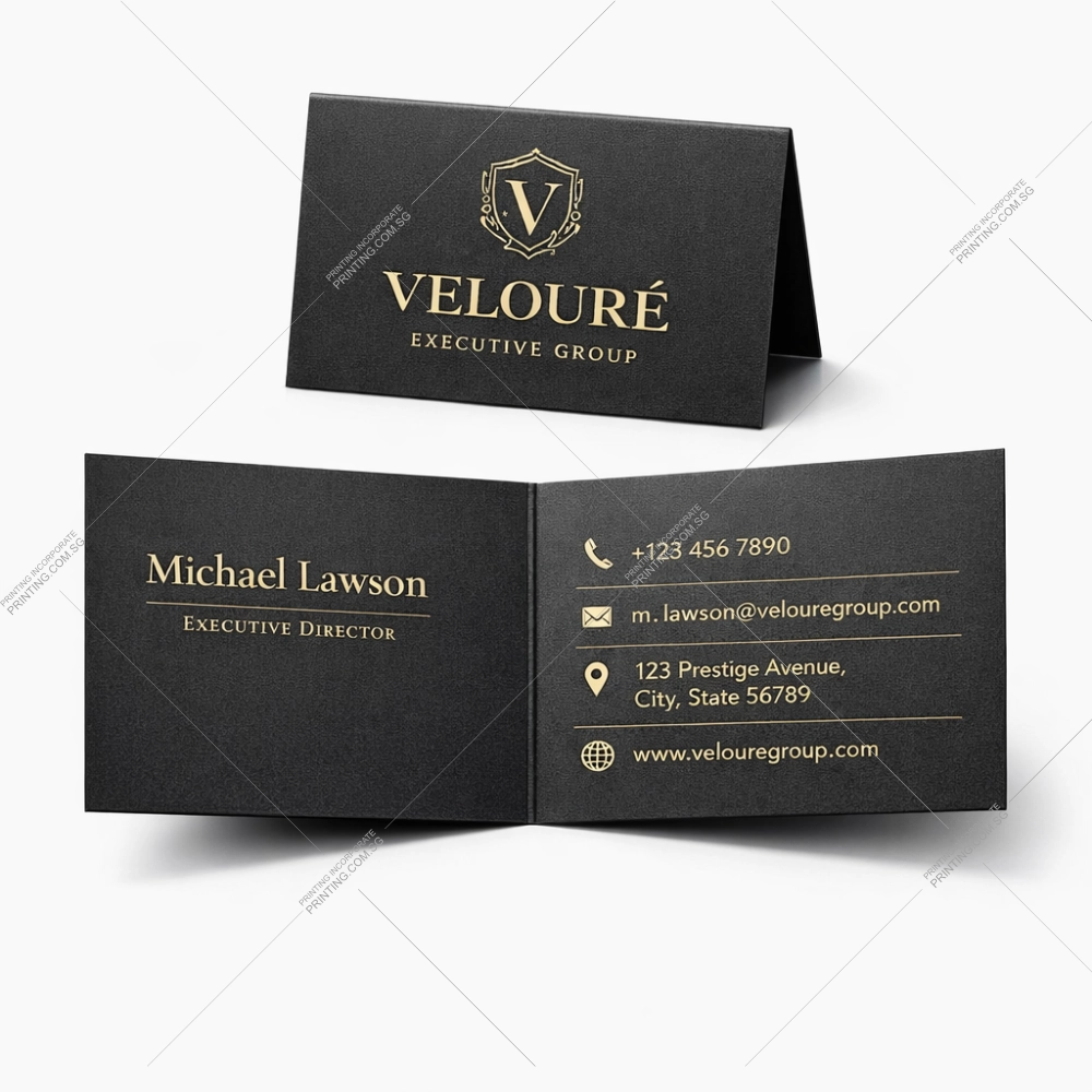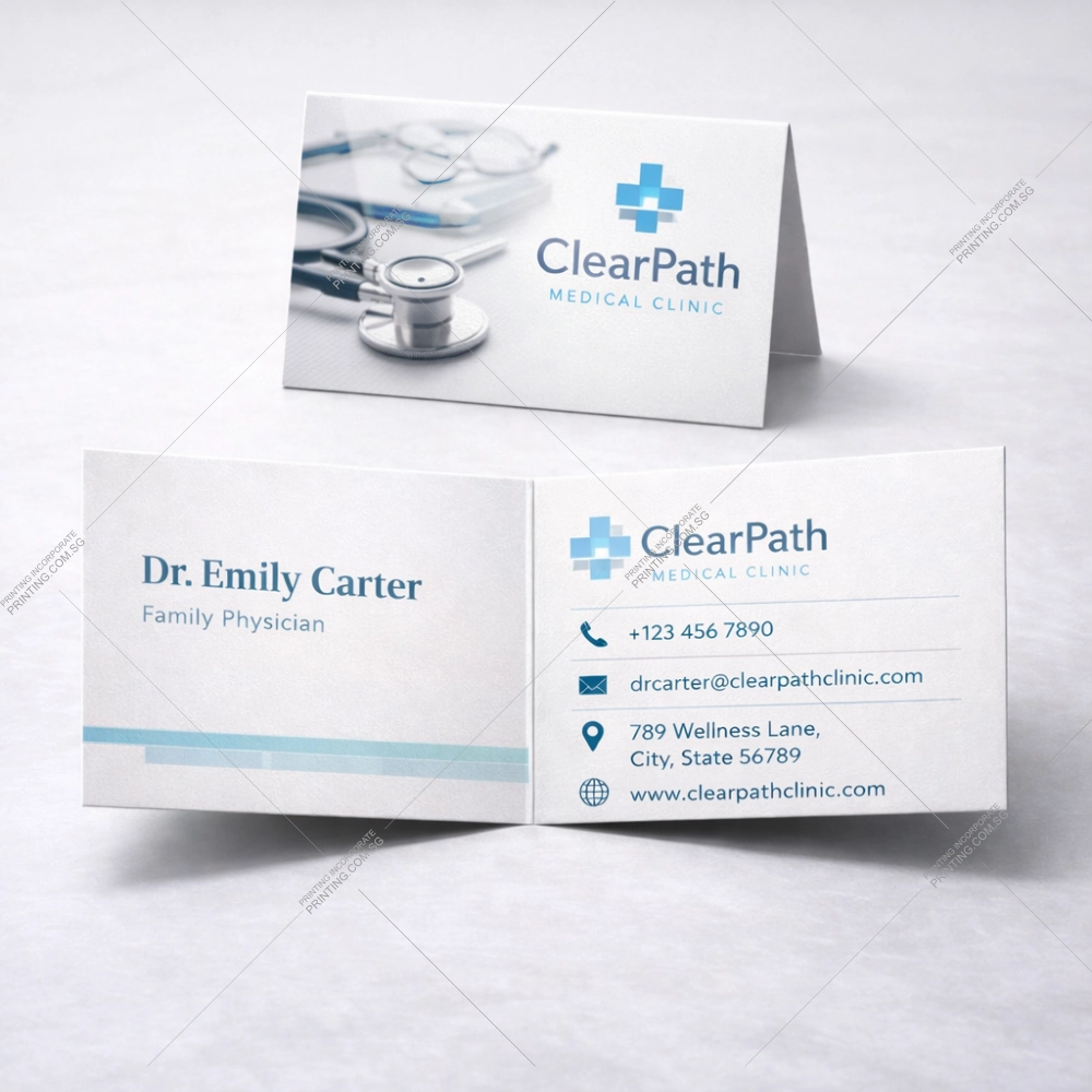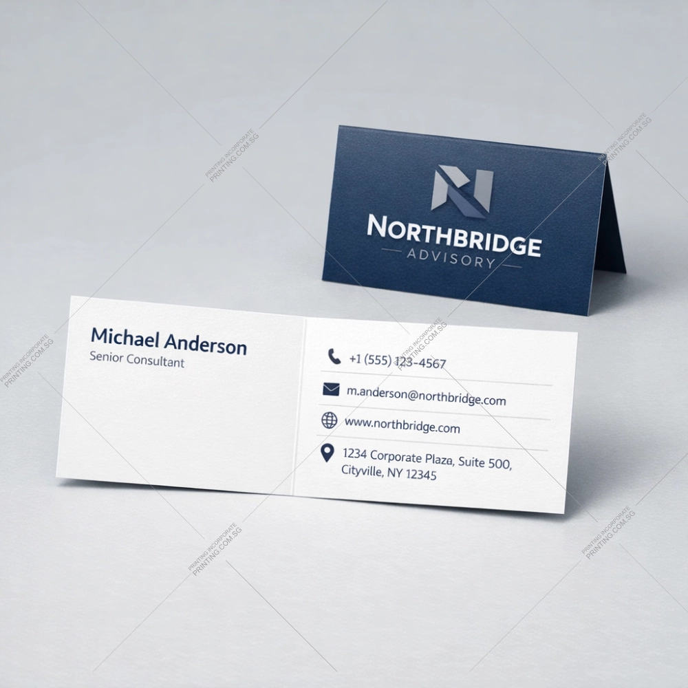 Folded business cards allow information to be organised across multiple panels, making it easier to present details clearly. The folded format provides a simple way to structure information while maintaining a professional appearance.