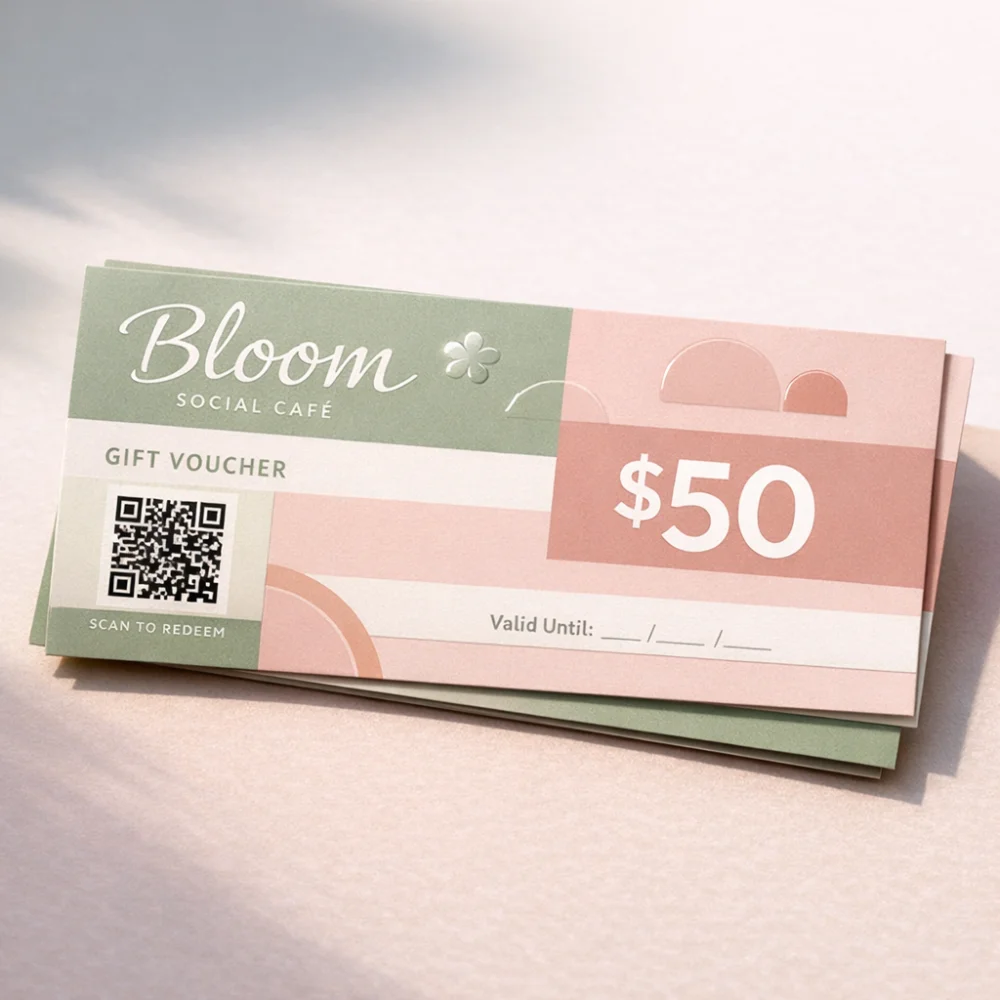 Gift vouchers provide a practical way to manage prepaid services and promotional campaigns while maintaining professional presentation. Their flexible size and finishing options make them suitable for various business types and usage conditions.