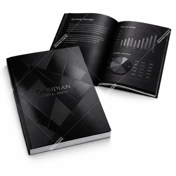 This binding format is ideal for corporate reports, annual reports, proposals, academic submissions, manuals, and research documents. The square spine allows titles or report names to be printed on the spine, making softcover reports suitable for shelving, archiving, and formal distribution.