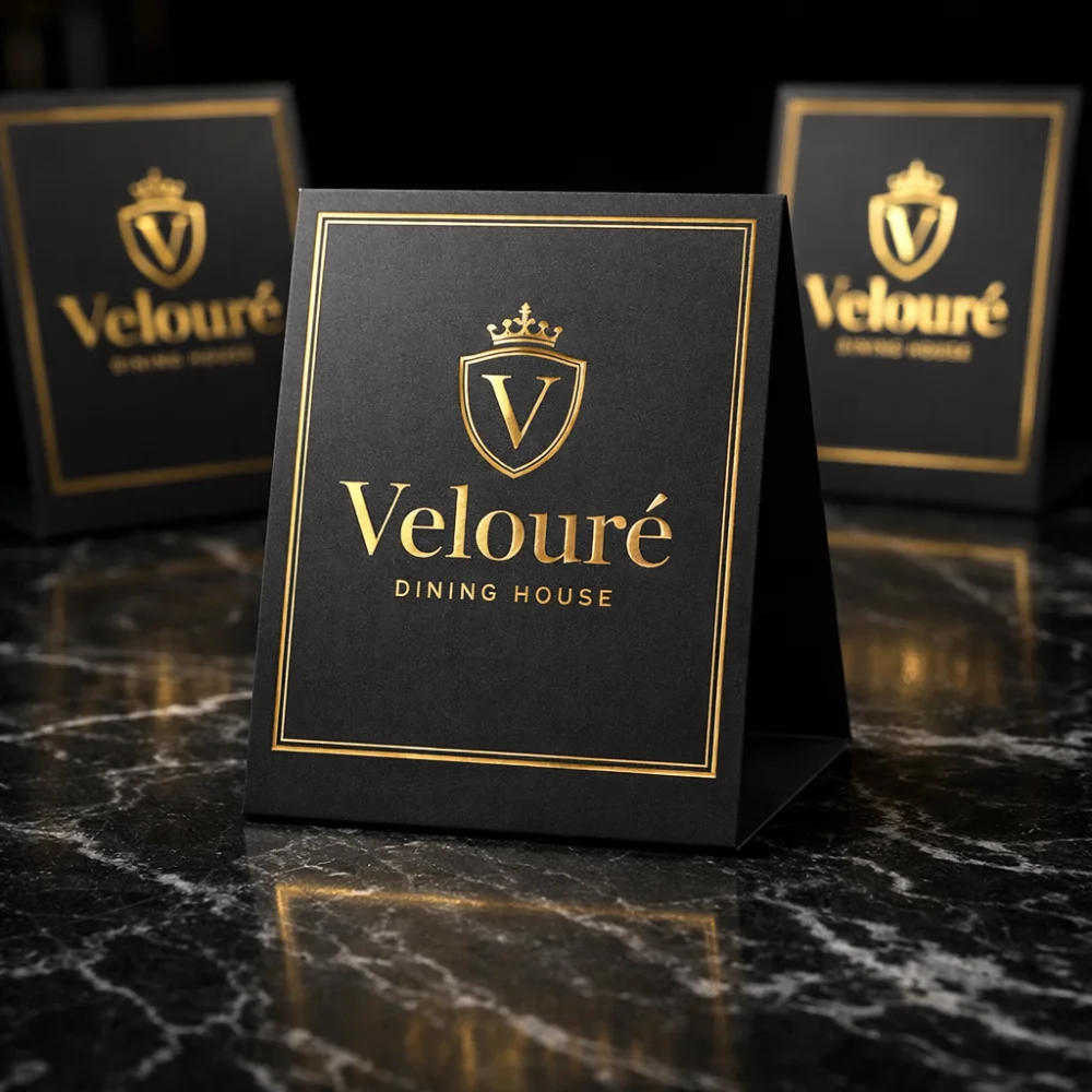 Table tents are folded display cards designed to stand upright on tables or counters. They are commonly used to display menus, promotions, QR codes, or informational messages.